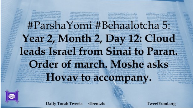 #ParshaYomi #Behaalotcha 5: Year 2, Month 2, Day 12: Cloud leads Israel from Sinai to Paran. Order of march. Moshe asks Hovav to accompany.