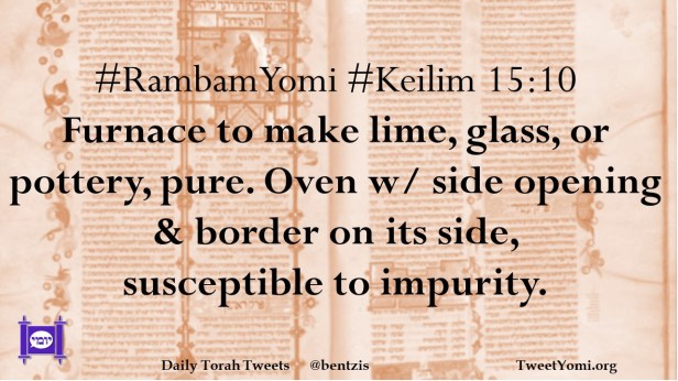 #RambamYomi #Keilim 15:10 Furnace to make lime, glass, or pottery, pure. Oven w/ side opening & border on its side, susceptible to impurity.