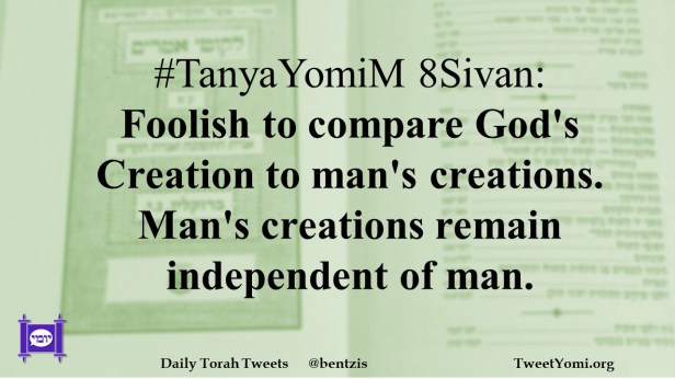 TanyaYomiM #TanyaYomiM 8Sivan Date: June 19, 2022Author: ysspitz #TanyaYomiM 8Sivan: Foolish to compare God’s Creation to man’s creations. Man’s creations remain independent of man. Share this: Share on X (Opens in new window) X Share on Facebook (Opens in new window) Facebook Like Loading... Related
