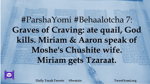 #ParshaYomi #Behaalotcha 7: Graves of Craving: ate quail, God kills. Miriam & Aaron speak of Moshe’s Chushite wife. Miriam gets Tzaraat.