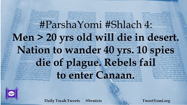 #ParshaYomi #Shlach 4: Men > 20 yrs old will die in desert. Nation to wander 40 yrs. 10 spies die of plague. Rebels fail to enter Canaan.