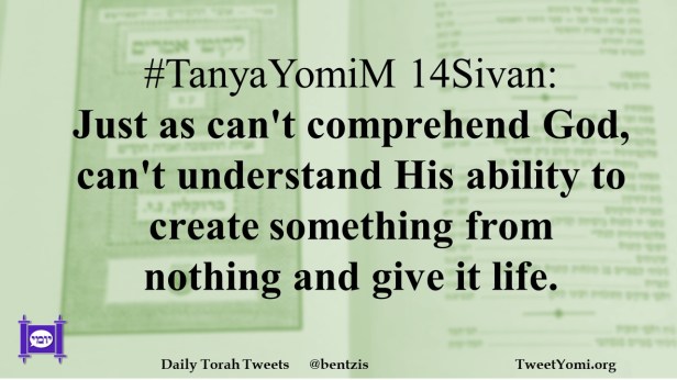 #TanyaYomiM 14Sivan: Just as can’t comprehend God, can’t understand His ability to create something from nothing and give it life.