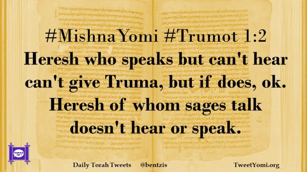 #MishnaYomi #Trumot 1:2 Heresh who speaks but can’t hear can’t give Truma, but if does, ok. Heresh of whom sages talk doesn’t hear or speak.