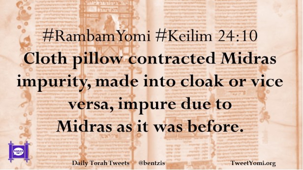 #RambamYomi #Keilim 24:10 Cloth pillow contracted Midras impurity, made into cloak or vice versa, impure due to Midras as it was before.