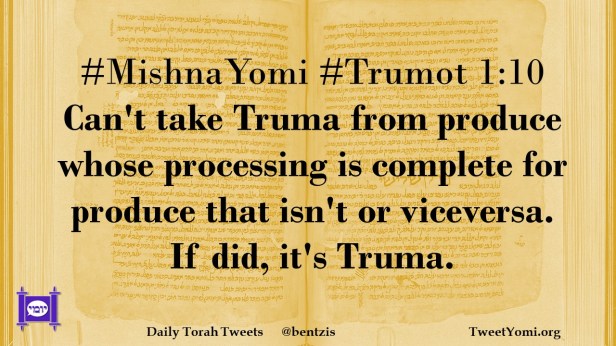 #MishnaYomi #Trumot 1:10 Can’t take Truma from produce whose processing is complete for produce that isn’t or viceversa. If did, it’s Truma.