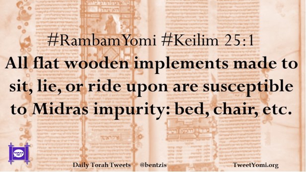 #RambamYomi #Keilim 25:1 All flat wooden implements made to sit, lie, or ride upon are susceptible to Midras impurity: bed, chair, etc.