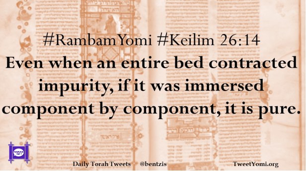 #RambamYomi #Keilim 26:14 Even when an entire bed contracted impurity, if it was immersed component by component, it is pure.