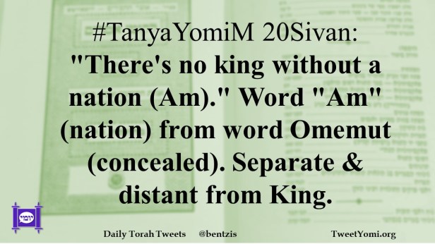 #TanyaYomiM 20Sivan: “There’s no king without a nation (Am).” Word “Am” (nation) from word Omemut (concealed). Separate & distant from King.