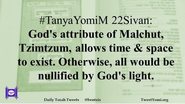 #TanyaYomiM 22Sivan: God’s attribute of Malchut, Tzimtzum, allows time & space to exist. Otherwise, all would be nullified by God’s light.