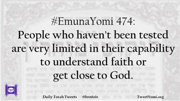 EmunaYomi #EmunaYomi 474 Date: July 3, 2022Author: ysspitz #EmunaYomi 474: People who haven’t been tested are very limited in their capability to understand faith or get close to God. Share this: Share on X (Opens in new window) X Share on Facebook (Opens in new window) Facebook Like Loading... Related