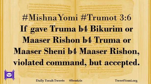 #MishnaYomi #Trumot 3:6 If gave Truma b4 Bikurim or Maaser Rishon b4 Truma or Maaser Sheni b4 Maaser Rishon, violated command, but accepted.