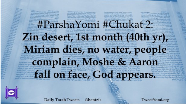 #ParshaYomi #Chukat 2: Zin desert, 1st month (40th yr), Miriam dies, no water, people complain, Moshe & Aaron fall on face, God appears.