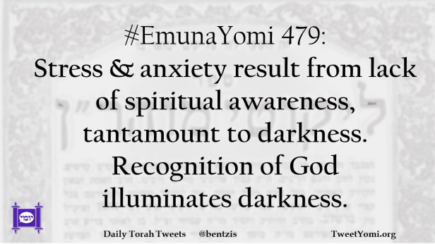 #EmunaYomi 479: Stress & anxiety result from lack of spiritual awareness, tantamount to darkness. Recognition of God illuminates darkness.