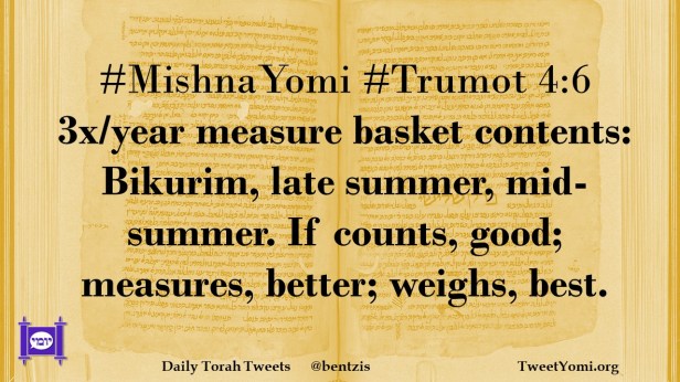#MishnaYomi #Trumot 4:6 3x/year measure basket contents: Bikurim, late summer, mid-summer. If counts, good; measures, better; weighs, best.