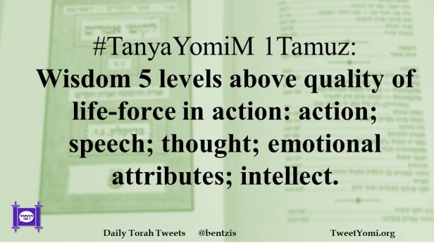 #TanyaYomiM 1Tamuz: Wisdom 5 levels above quality of life-force in action: action; speech; thought; emotional attributes; intellect.