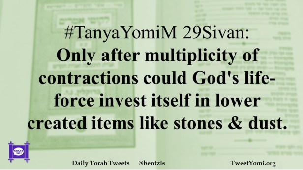 #TanyaYomiM 29Sivan: Only after multiplicity of contractions could God’s life-force invest itself in lower created items like stones & dust.
