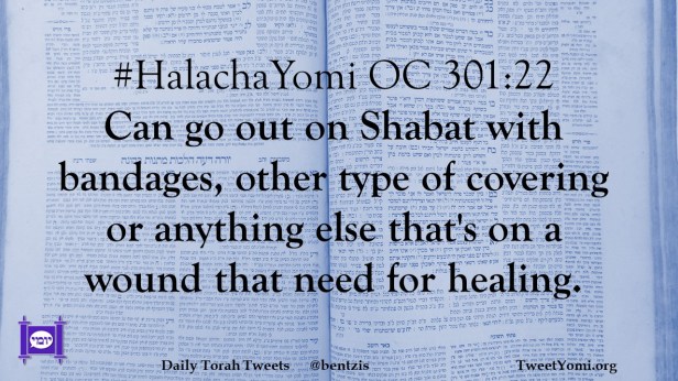 #HalachaYomi OC 301:22 Can go out on Shabat with bandages, other type of covering or anything else that’s on a wound that need for healing.