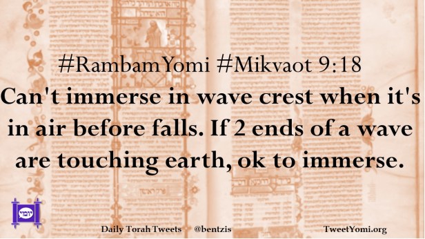 #RambamYomi #Mikvaot 9:18 Can’t immerse in wave crest when it’s in air before falls. If 2 ends of a wave are touching earth, ok to immerse.