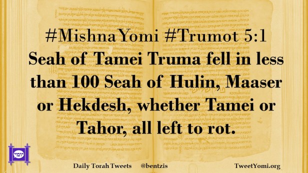 #MishnaYomi #Trumot 5:1 Seah of Tamei Truma fell in less than 100 Seah of Hulin, Maaser or Hekdesh, whether Tamei or Tahor, all left to rot.