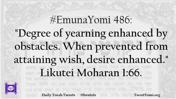 #EmunaYomi 486: “Degree of yearning enhanced by obstacles. When prevented from attaining wish, desire enhanced.” Likutei Moharan 1:66.