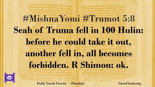 #MishnaYomi #Trumot 5:8 Seah of Truma fell in 100 Hulin: before he could take it out, another fell in, all becomes forbidden. R Shimon: ok.