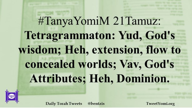 #TanyaYomiM 21Tamuz: Tetragrammaton: Yud, God’s wisdom; Heh, extension, flow to concealed worlds; Vav, God’s Attributes; Heh, Dominion.