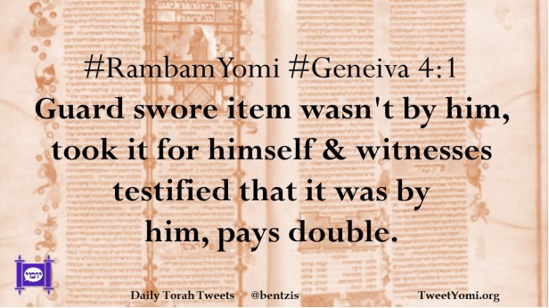 #RambamYomi #Geneiva 4:1 Guard swore item wasn’t by him, took it for himself & witnesses testified that it was by him, pays double.