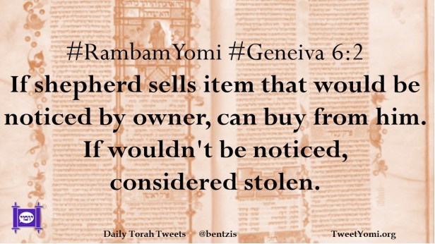 #RambamYomi #Geneiva 6:2 If shepherd sells item that would be noticed by owner, can buy from him. If wouldn’t be noticed, considered stolen.