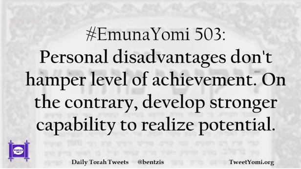 #EmunaYomi 503: Personal disadvantages don’t hamper level of achievement. On the contrary, develop stronger capability to realize potential.
