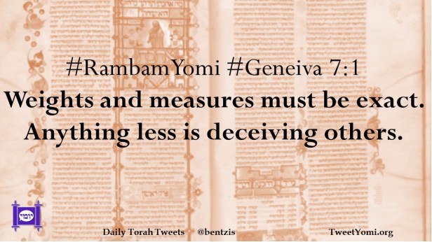 Geneiva, RambamYomi #RambamYomi #Geneiva 7:1 Date: July 24, 2022Author: ysspitz #RambamYomi #Geneiva 7:1 Weights and measures must be exact. Anything less is deceiving others. Share this: Share on X (Opens in new window) X Share on Facebook (Opens in new window) Facebook Like Loading... Related