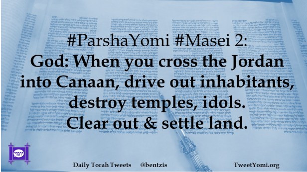 #ParshaYomi #Masei 2: God: When you cross the Jordan into Canaan, drive out inhabitants, destroy temples, idols. Clear out & settle land.
