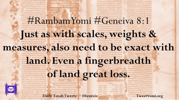 #RambamYomi #Geneiva 8:1 Just as with scales, weights & measures, also need to be exact with land. Even a fingerbreadth of land great loss.
