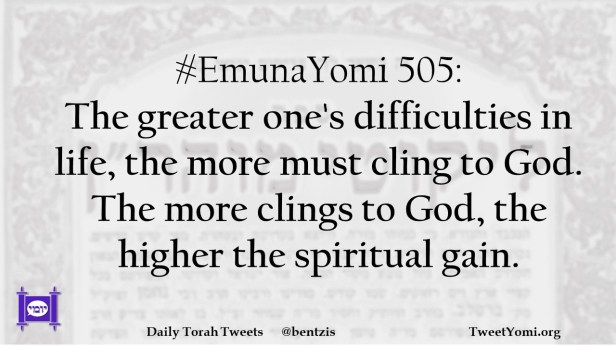 #EmunaYomi 505: The greater one’s difficulties in life, the more must cling to God. The more clings to God, the higher the spiritual gain.