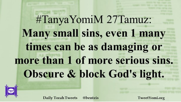 #TanyaYomiM 27Tamuz: Many small sins, even 1 many times can be as damaging or more than 1 of more serious sins. Obscure & block God’s light.
