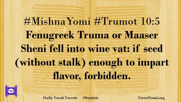 #MishnaYomi #Trumot 10:5 Fenugreek Truma or Maaser Sheni fell into wine vat: if seed (without stalk) enough to impart flavor, forbidden.