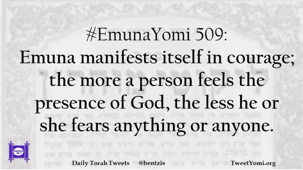 #EmunaYomi 509: Emuna manifests itself in courage; the more a person feels the presence of God, the less he or she fears anything or anyone.