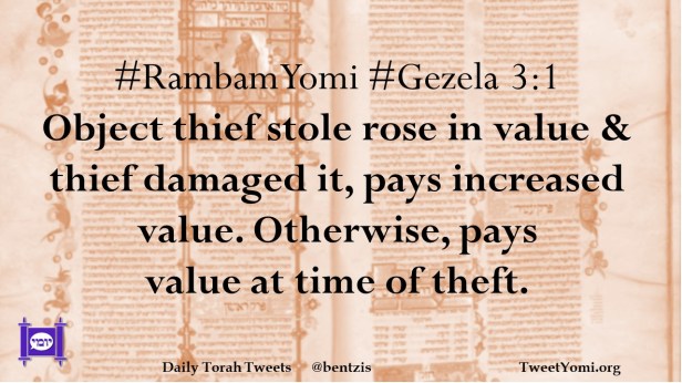 #RambamYomi #Gezela 3:1 Object thief stole rose in value & thief damaged it, pays increased value. Otherwise, pays value at time of theft.