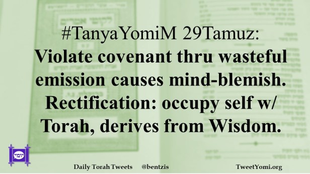 #TanyaYomiM 29Tamuz: Violate covenant thru wasteful emission causes mind-blemish. Rectification: occupy self w/ Torah, derives from Wisdom.