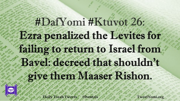 DafYomi, Ktuvot #DafYomi #Ktuvot 26 Date: August 2, 2022Author: ysspitz #DafYomi #Ktuvot 26: Ezra penalized the Levites for failing to return to Israel from Bavel: decreed that shouldn’t give them Maaser Rishon. Share this: Share on X (Opens in new window) X Share on Facebook (Opens in new window) Facebook Like Loading... Related