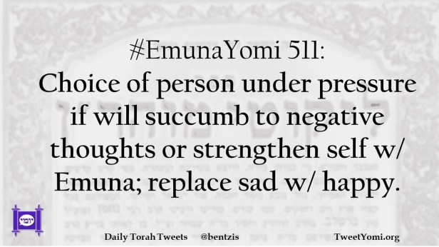 #EmunaYomi 511: Choice of person under pressure if will succumb to negative thoughts or strengthen self w/ Emuna; replace sad w/ happy.