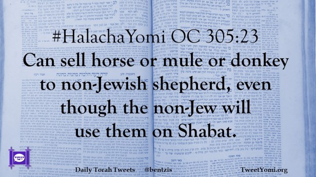 #HalachaYomi OC 305:23 Can sell horse or mule or donkey to non-Jewish shepherd, even though the non-Jew will use them on Shabat.