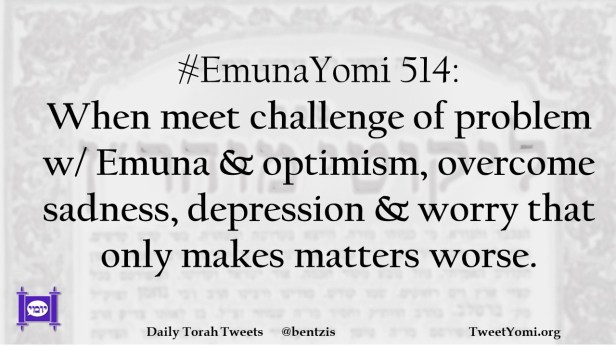 #EmunaYomi 514: When meet challenge of problem w/ Emuna & optimism, overcome sadness, depression & worry that only makes matters worse.