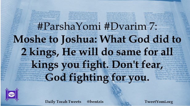 #ParshaYomi #Dvarim 7: Moshe to Joshua: What God did to 2 kings, He will do same for all kings you fight. Don’t fear, God fighting for you.