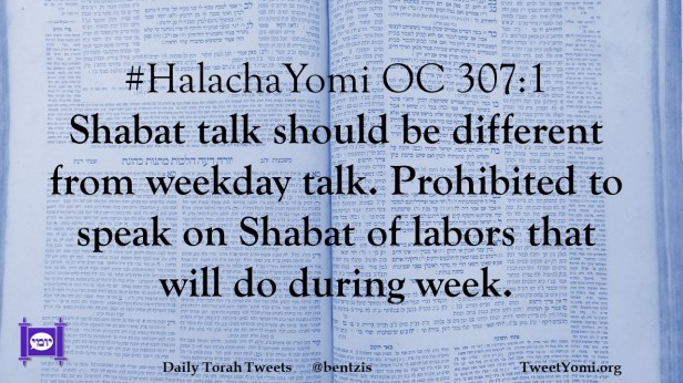 #HalachaYomi OC 307:1 Shabat talk should be different from weekday talk. Prohibited to speak on Shabat of labors that will do during week.