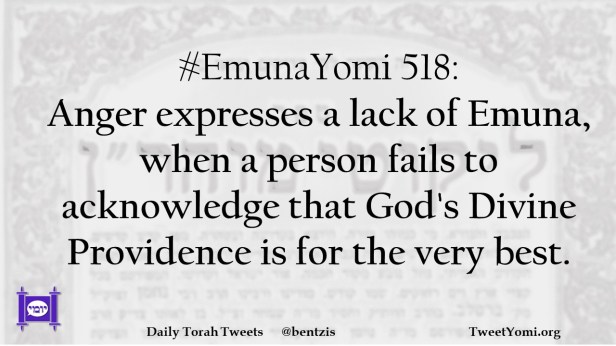 #EmunaYomi 518: Anger expresses a lack of Emuna, when a person fails to acknowledge that God’s Divine Providence is for the very best.