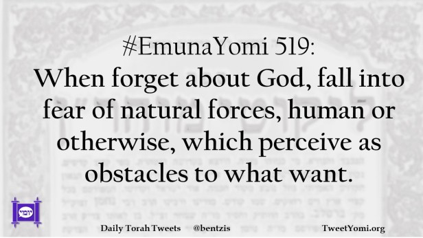 #EmunaYomi 519: When forget about God, fall into fear of natural forces, human or otherwise, which perceive as obstacles to what want.