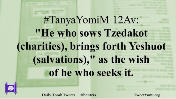 TanyaYomiM #TanyaYomiM 12Av Date: August 9, 2022Author: ysspitz #TanyaYomiM 12Av: “He who sows Tzedakot (charities), brings forth Yeshuot (salvations),” as the wish of he who seeks it. Share this: Share on X (Opens in new window) X Share on Facebook (Opens in new window) Facebook Like Loading... Related