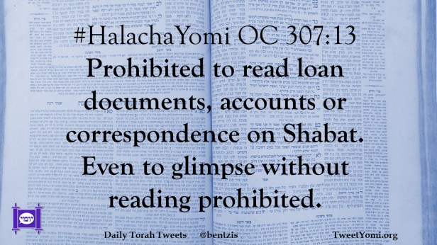 #HalachaYomi OC 307:13 Prohibited to read loan documents, accounts or correspondence on Shabat. Even to glimpse without reading prohibited.