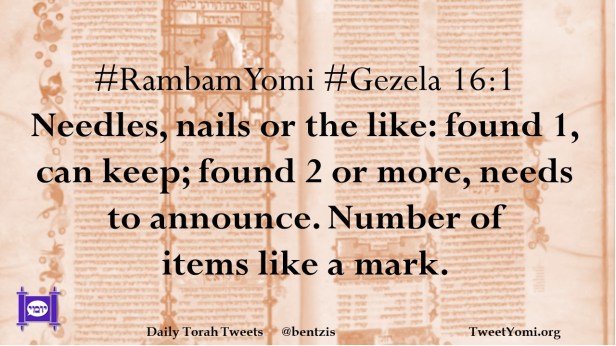 #RambamYomi #Gezela 16:1 Needles, nails or the like: found 1, can keep; found 2 or more, needs to announce. Number of items like a mark.