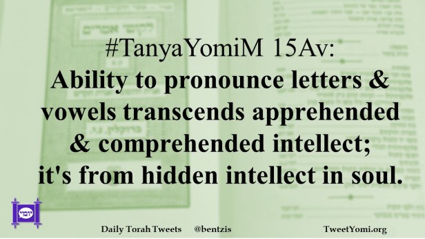 #TanyaYomiM 15Av: Ability to pronounce letters & vowels transcends apprehended & comprehended intellect; it’s from hidden intellect in soul.